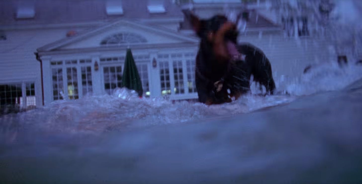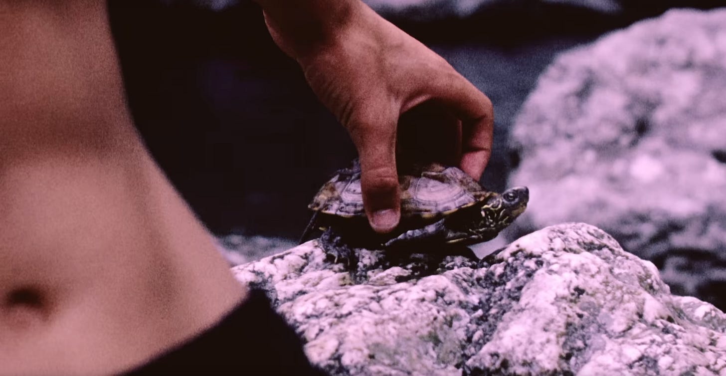 Oh, shit! Now we’re in the water looking up at Mariah? Has she been the Dreamlover the whole time? Are we the pursued or the pursuer? Are we a boy or a girl? Do we own that dog and that mansion? Does she? And, you guys, seriously, did we decide to play with that turtle before we dove into the water to rescue Mariah or right after we rescued Mariah? Because either way, it seems a little weird to stop and play with a turtle, right? Is that her turtle? Was this directed by Charlie Kaufman?