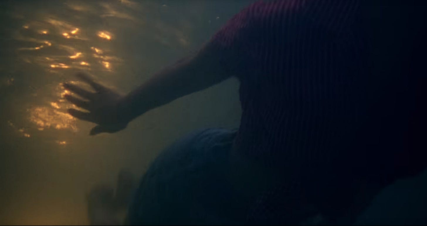 We’re underwater, you and I, looking up to the surface. Someone is reaching down to us from above. Is it a beefy boy? Maybe! We can’t know!