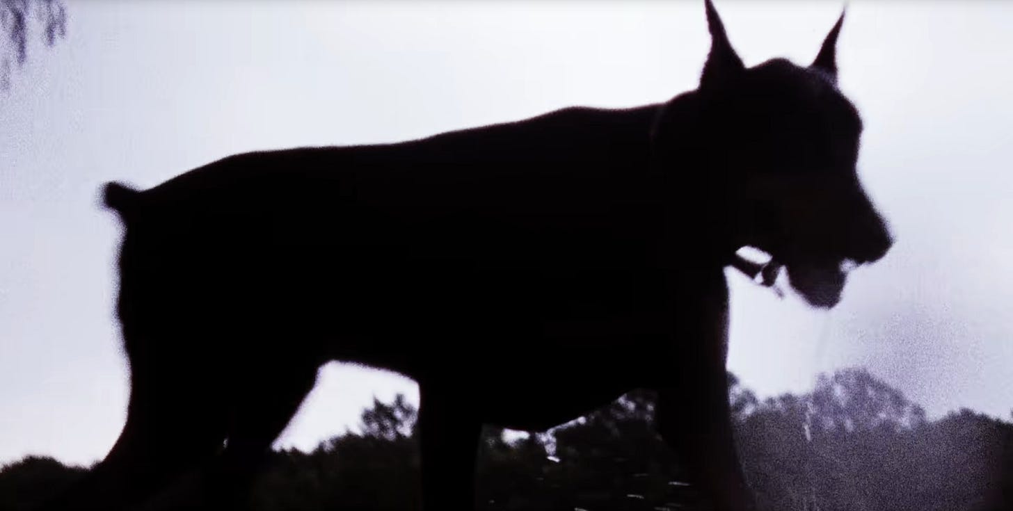 And now there’s a dog! Is that the beefy rescue boy’s dog? Is it a Dobermann Pinscher? Is it safe? It looks scary. Can we pet it?