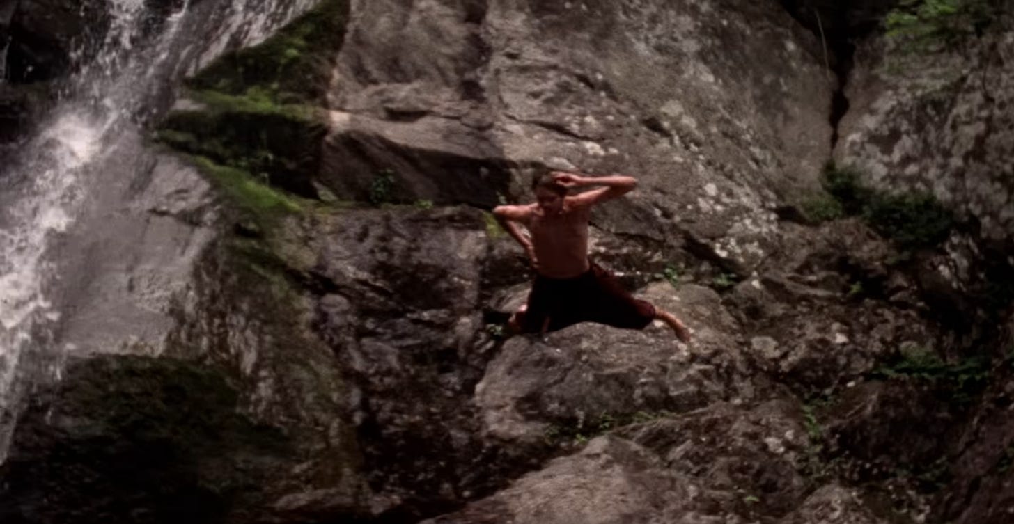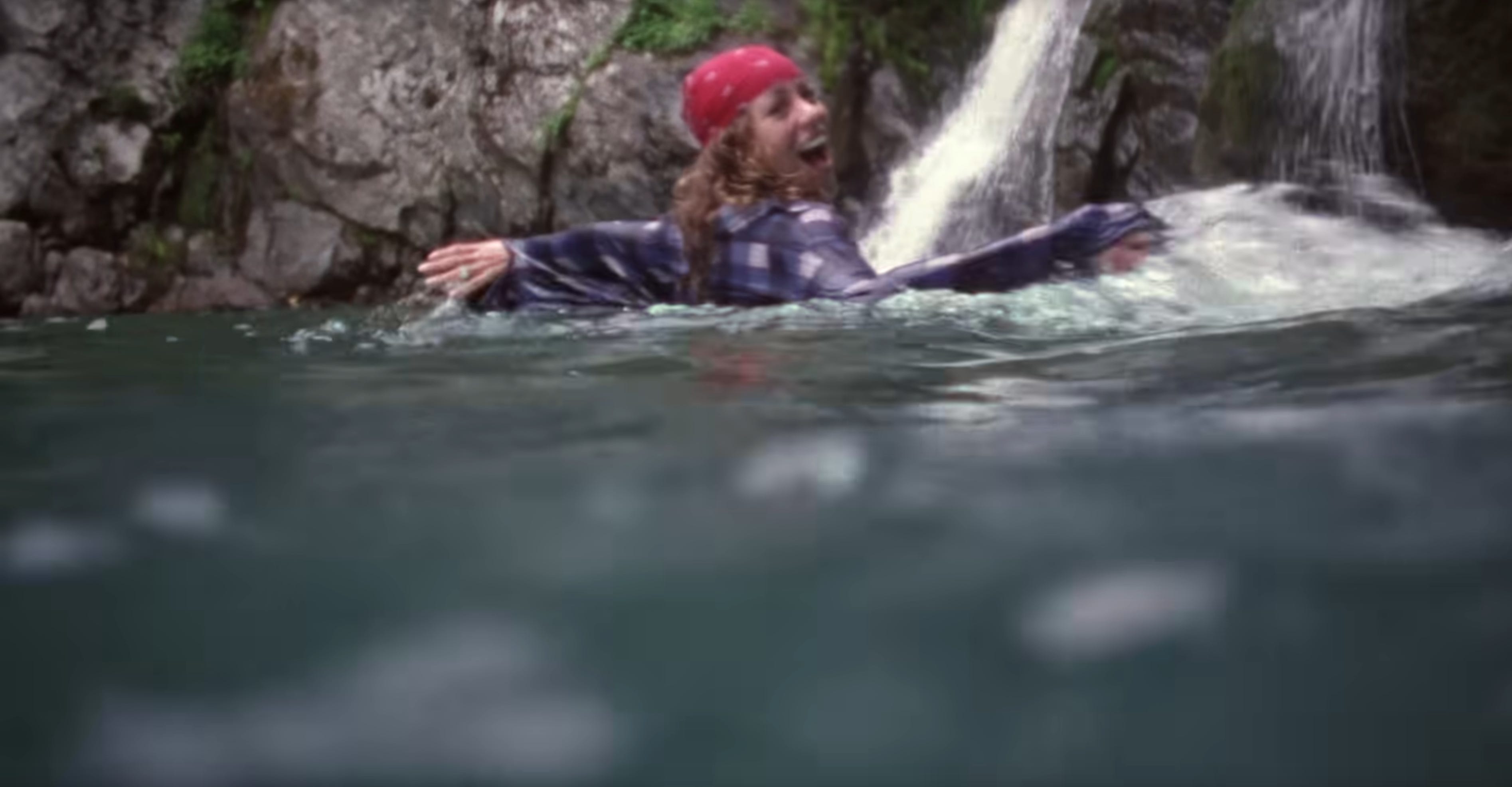 Another shift. We’re having the flashback again. It was definitely a beefy boy who dove into the water to rescue us. He dove from a cliff? By a waterfall?